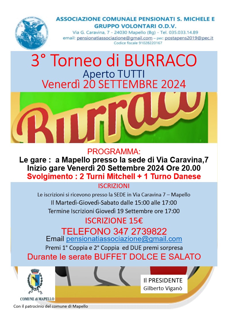 iscrizioni presso sede Associazione Comunale Pensionati San Michele in Via Caravina 7