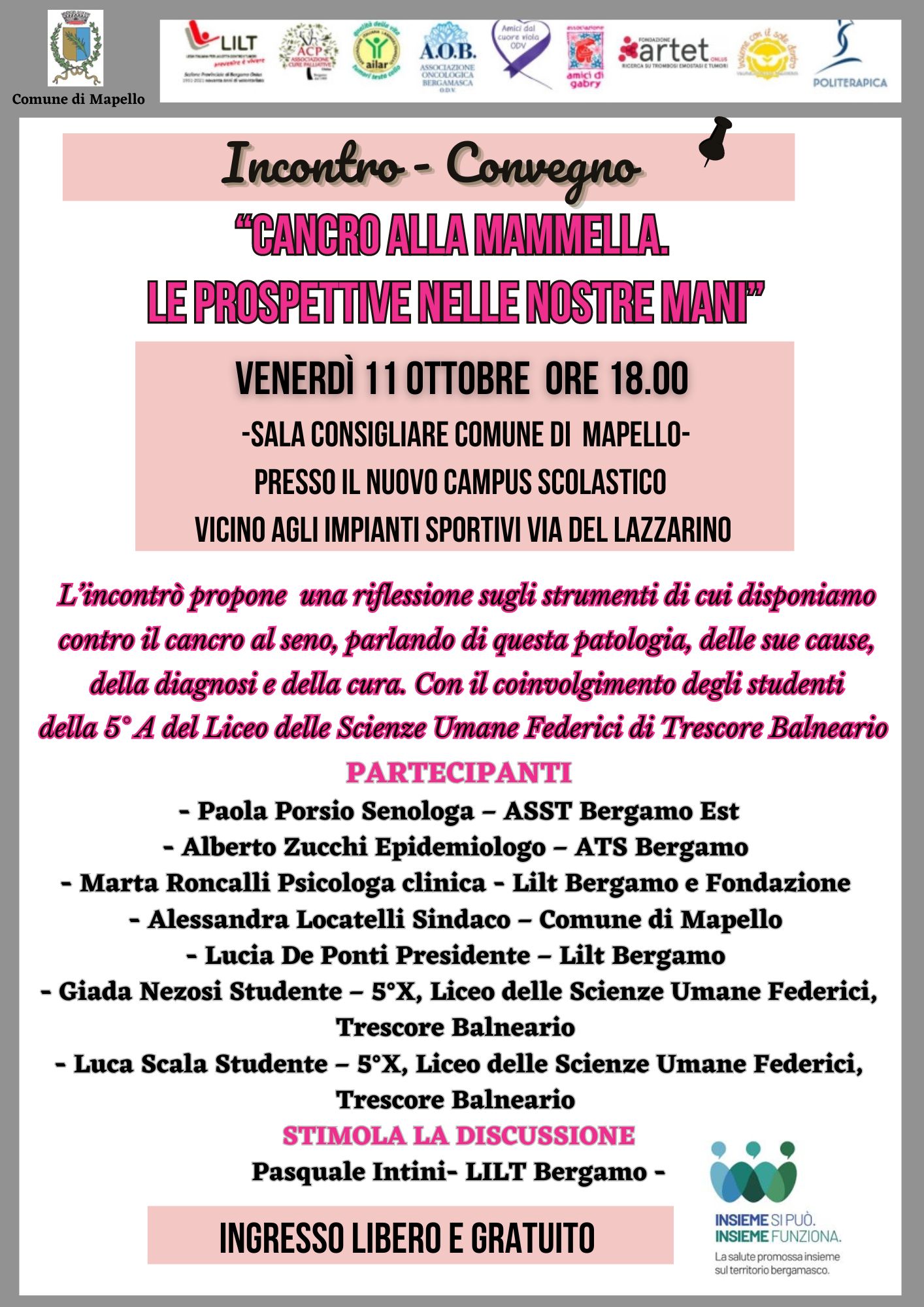 Questo incontro fa parte del 8° appuntamento di "Insieme si può. Insieme funziona - 2024", il progetto di promozione della cultura della salute da alcuni anni sul territorio. Ne rappresenta il momento centrale ma ha intorno una serie di altre attività, svolte dalle valli, alle città, alla pianura: postazioni informative, passeggiate della salute, momenti formativi nelle scuole e disponibilità di prestazioni sanitarie gratuite.