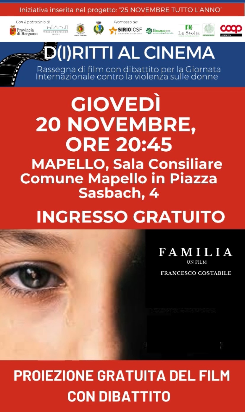 Descrizione Proiezione gratuita di un film di Francesco Costabile presso la Sala Consiliare Comunale di Piazza Sasbach 4 a Mapello con dibattito
