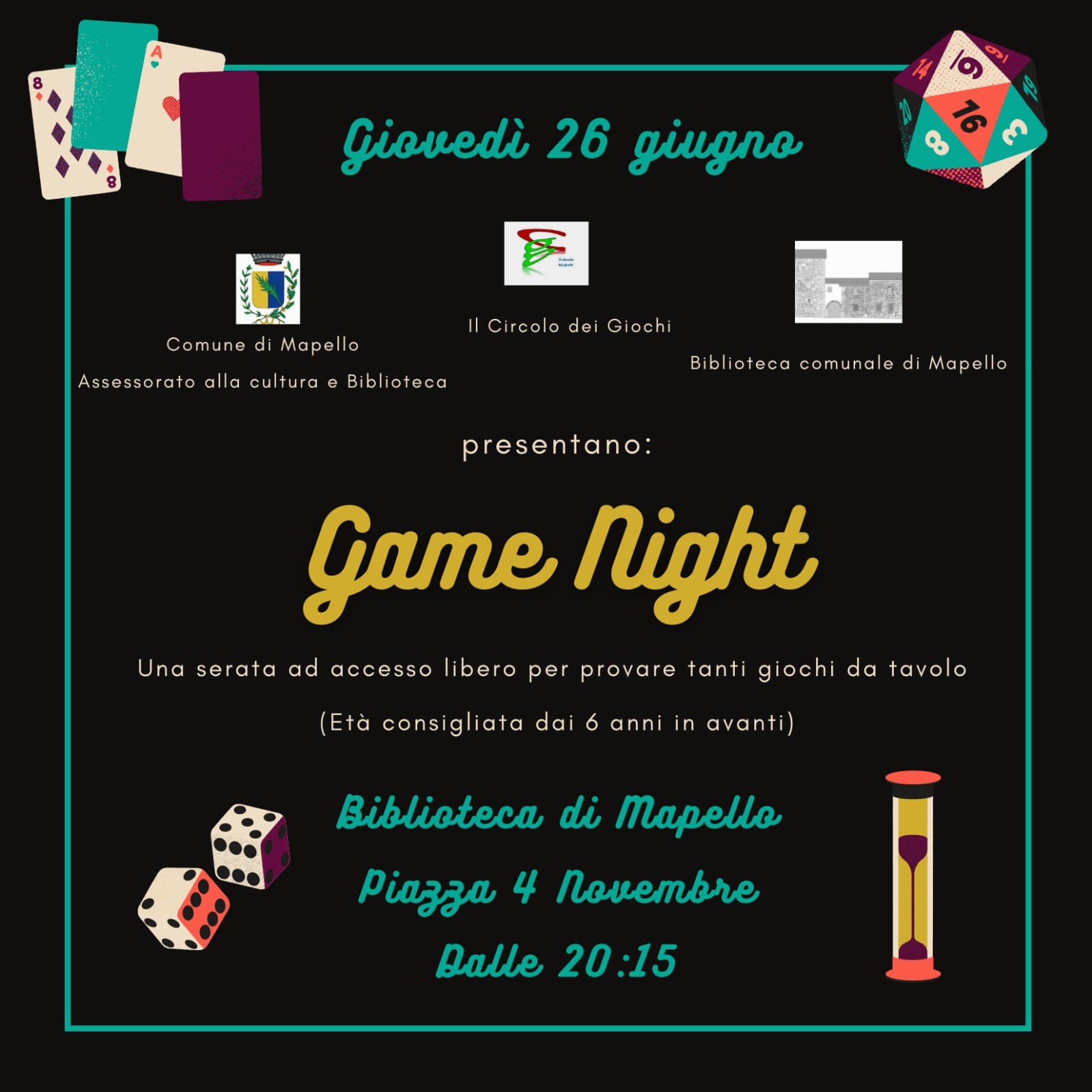 Dettagli Il Comune in collaborazione con il Circolo dei Giochi è lieto di invitare alla serata ad accesso libero per provare tanti giochi da tavolo Età consigliata dai 6 anni in avanti