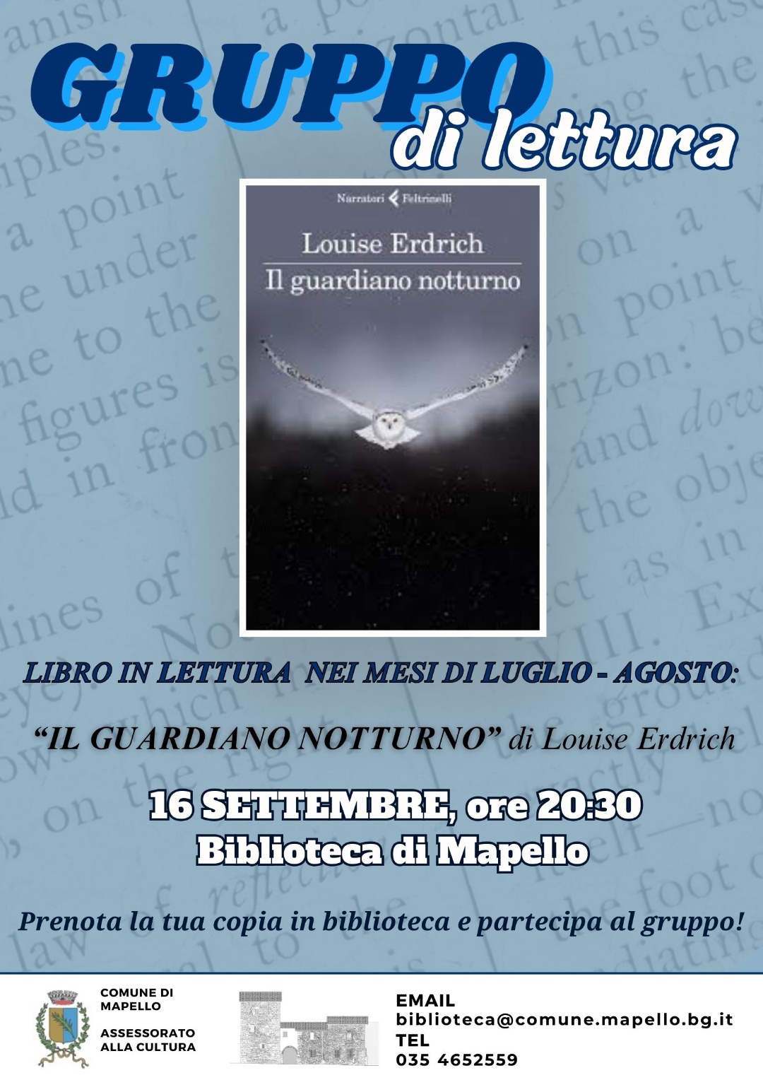 Gruppo di Lettura. L'incontro del Gruppo di lettura si terrà Lunedì 16 Settembre , nel volantino allegato tutte le info! Partecipazione libera, per dubbi o chiarimenti non esitate a contattare la biblioteca !
