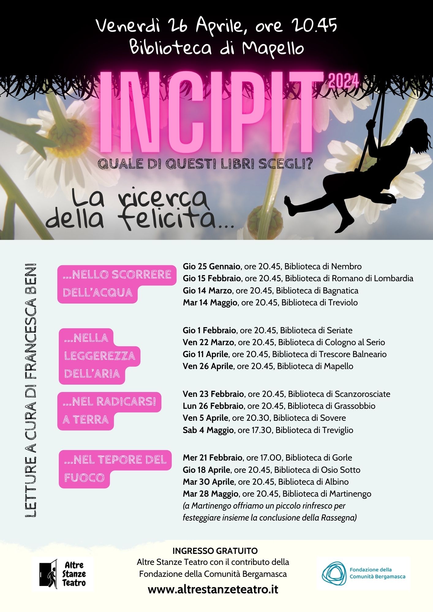 Incipit : Quale di questi libri scegli ? Venerdì 26 Aprile ore 20.45 presso la Biblioteca Comunale di Mapello. Nel volantino allegato tutte le info!