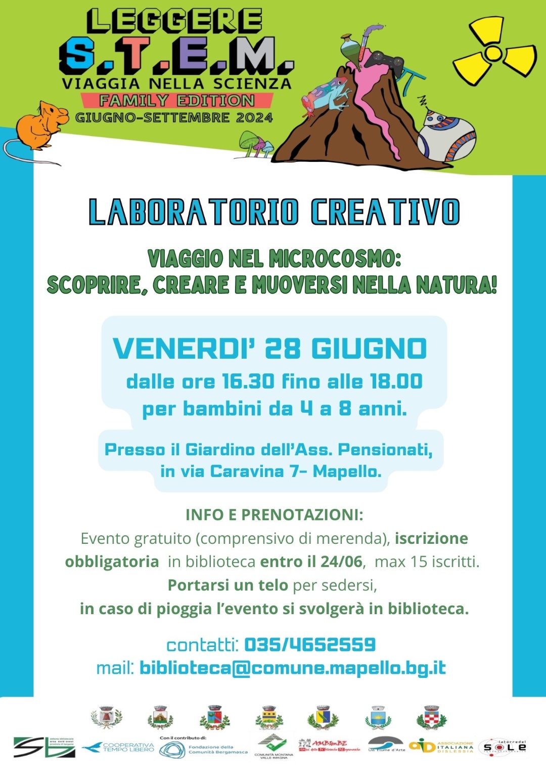 Viaggio nel microcosmo: Scoprire, creare e muoversi nella natura! Venerdì 28 Giugno dalle ore 16.30 fino alle 18.00. Nel volantino allegato tutte le info e le modalità d'adesione!