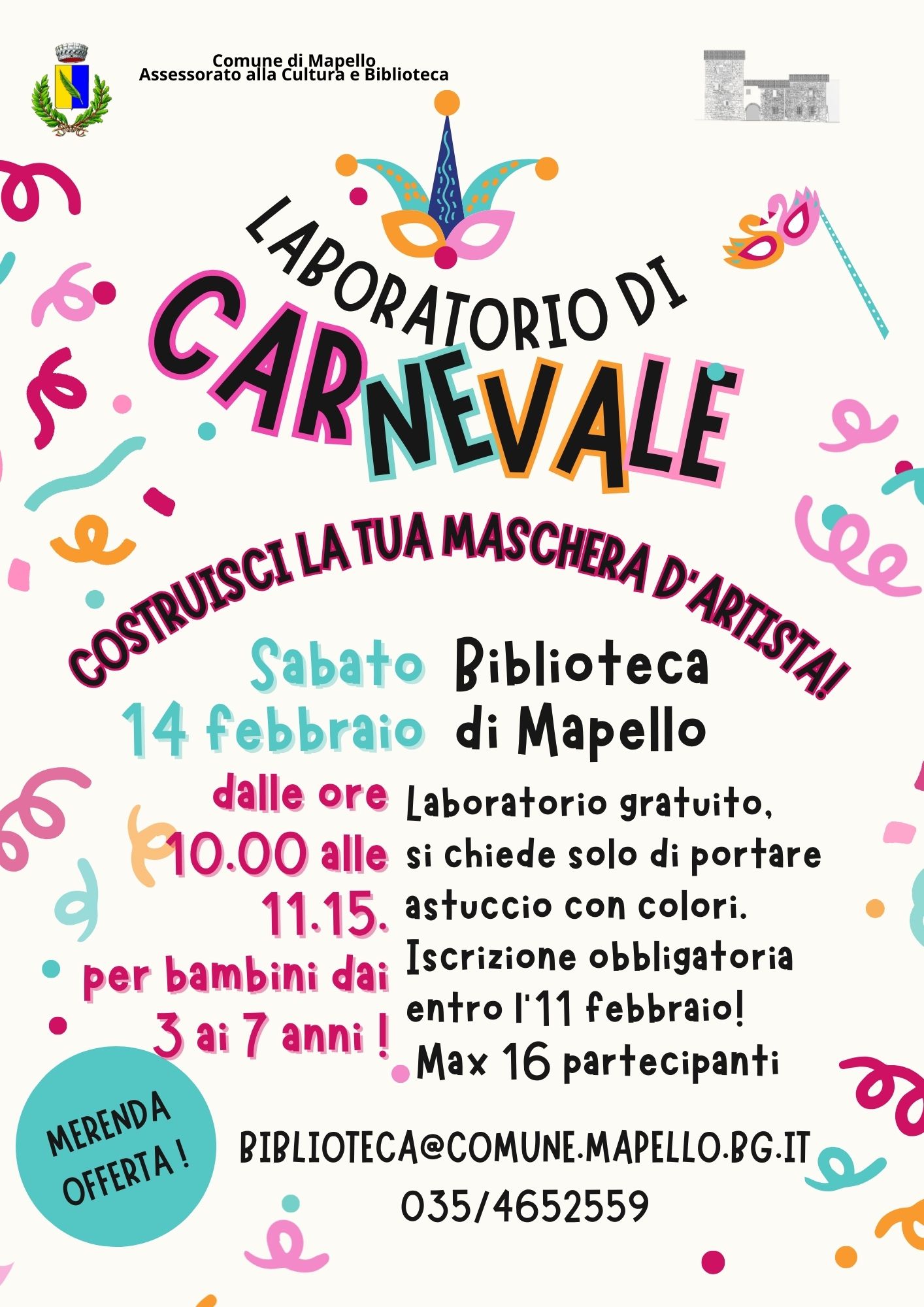 Sabato 14 febbraio dalle 10.00 alle 11.15 presso la biblioteca di mapello per bambini dai 3 ai 7 anni.