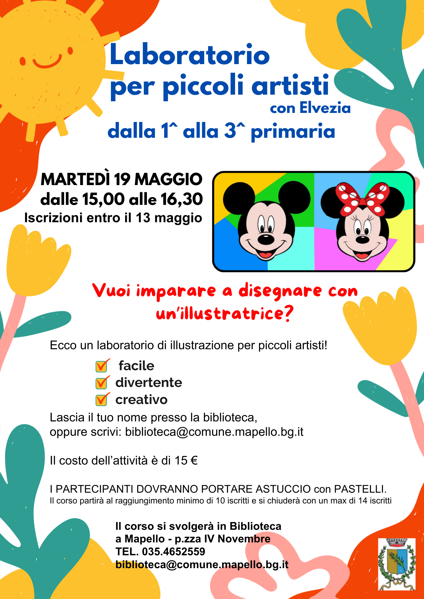 Martedì 19 magggio dalle 15.00 alle 16.30 per ragazzi dalla prima alla terza elementare .