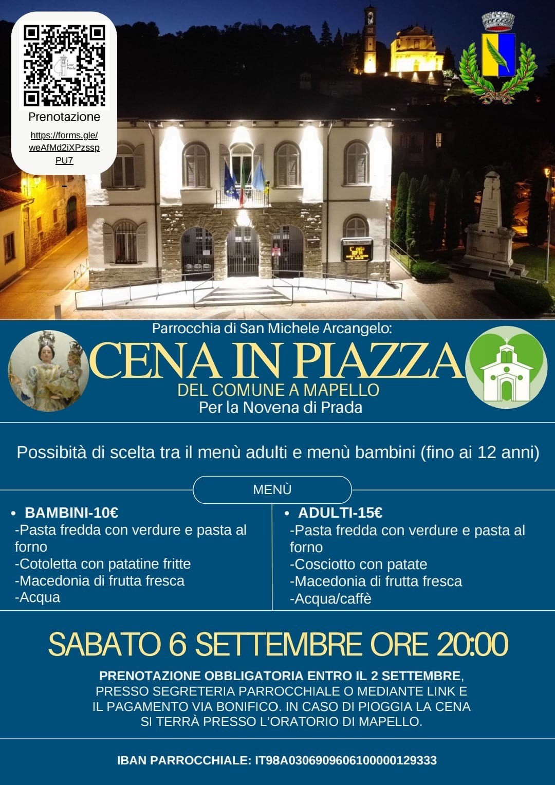 In caso di maltempo la cena verrà effettuata in Oratorio