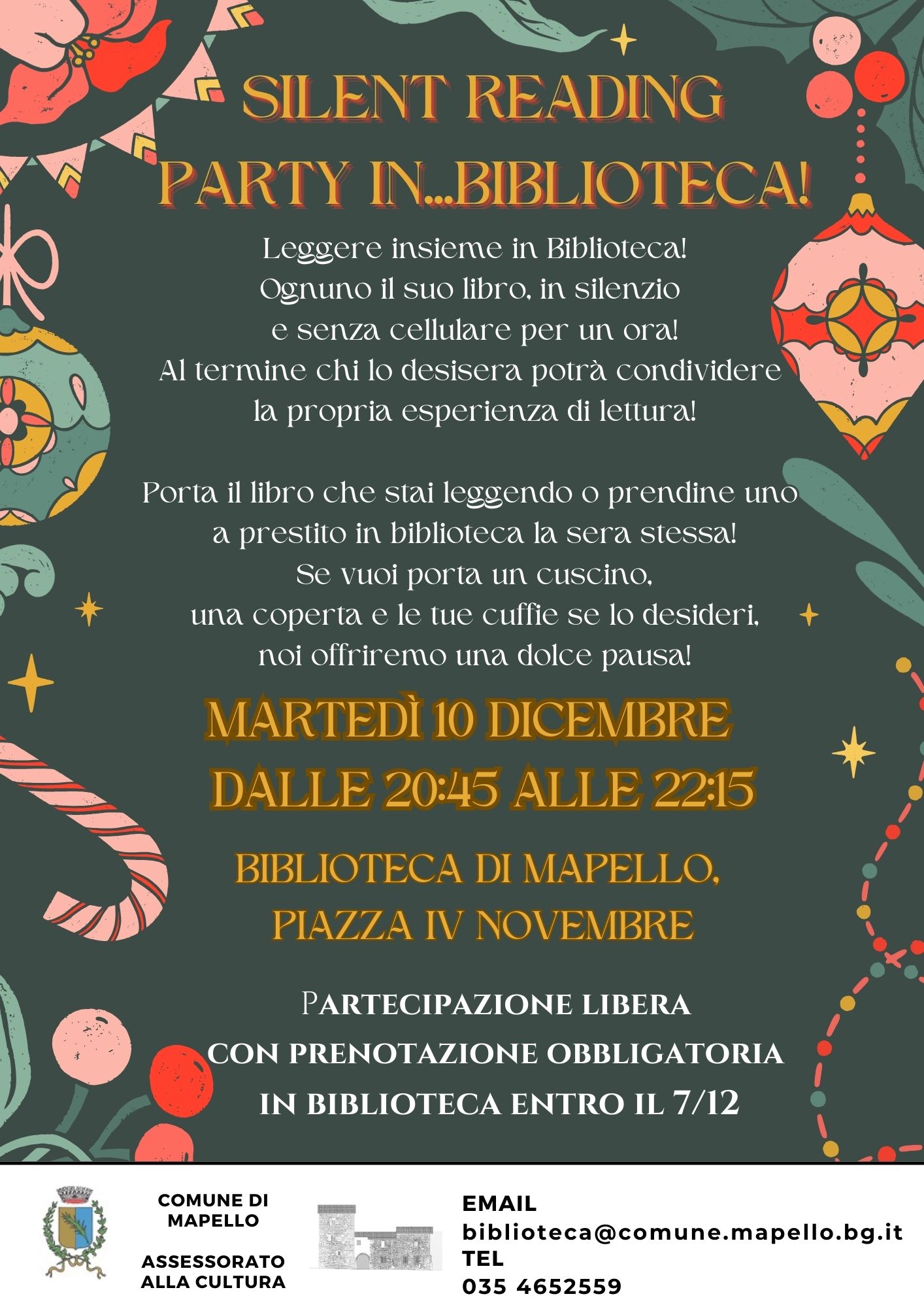 Silent Reading Party in ... Biblioteca! Martedì 10 Dicembre dalle 20.45 alle 22.15, nel volantino allegato tutte le info!
