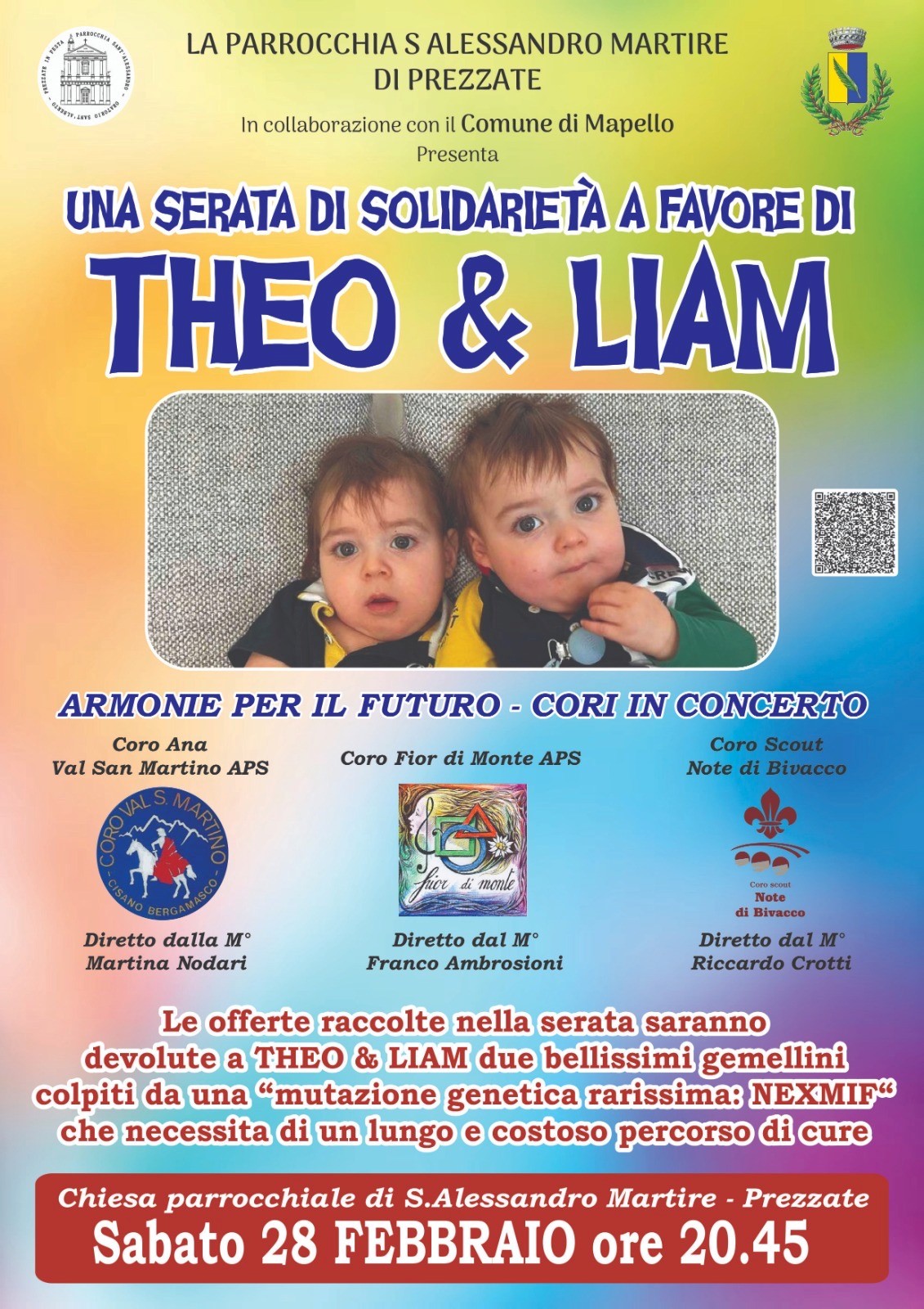 Le offerte raccolte nella serata saranno devolute a Theo e Liam, due gemellini colpiti da una mutazione genetica rarissima : Nexmif che necessità di un lungo percorso di cure.